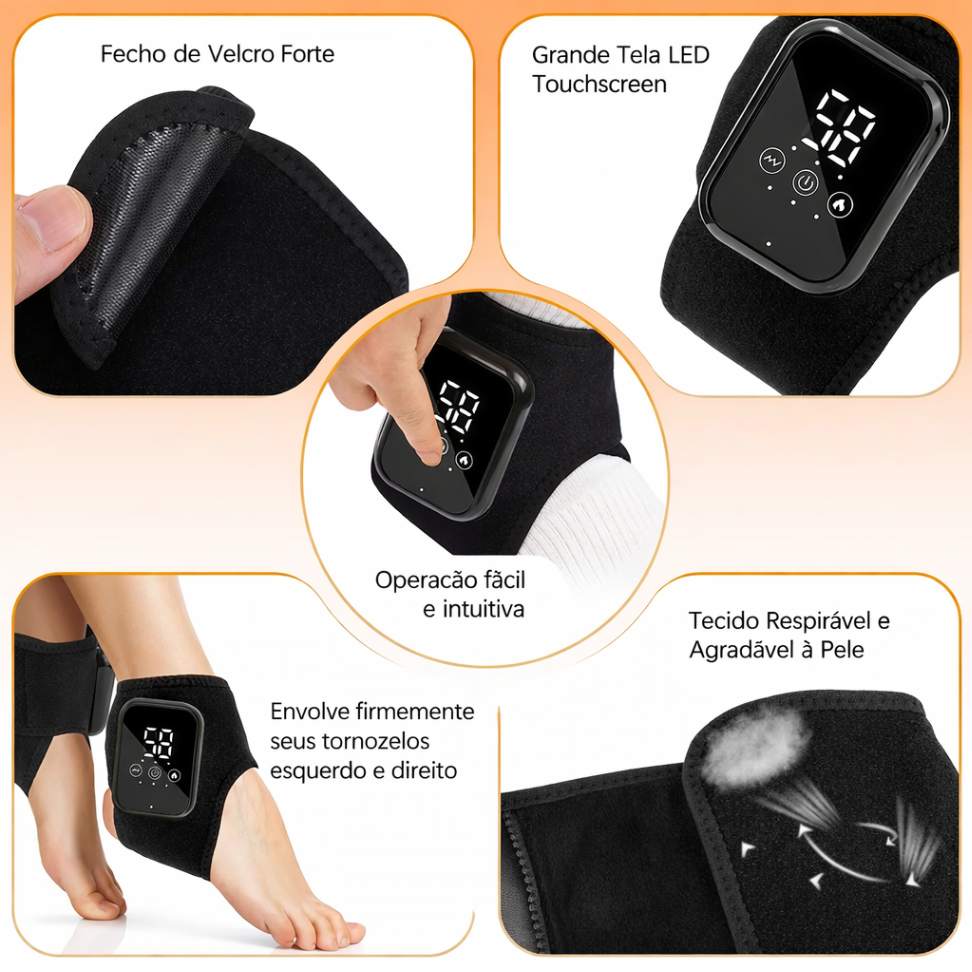 Compacto, moderno e fácil de usar, é ideal para quem passa longos períodos em pé, pratica atividades físicas ou sofre com desconfortos na região do tornozelo.
