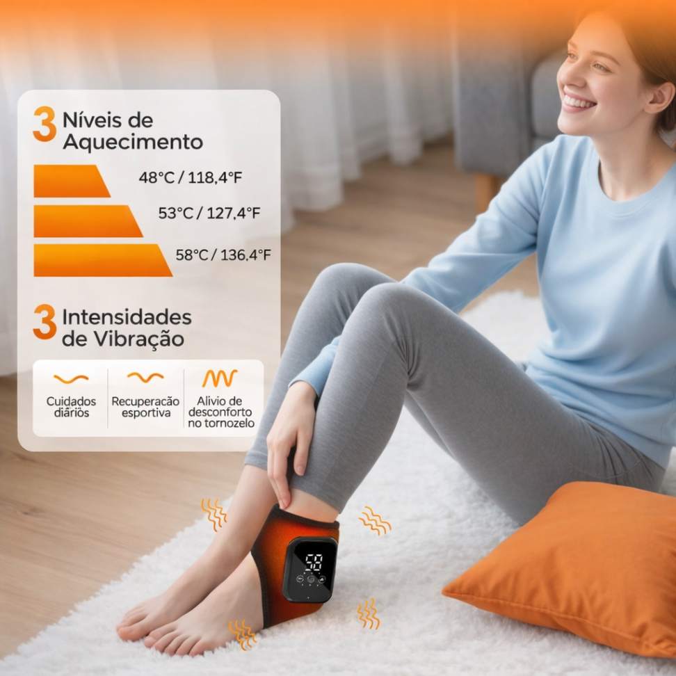 O Massageador de Tornozelo foi desenvolvido para proporcionar alívio eficiente de dores, relaxamento muscular e melhora da circulação na região dos pés e tornozelos. Com tecnologia de aquecimento e vibração, oferece uma experiência completa de cuidado e bem-estar no conforto da sua casa.