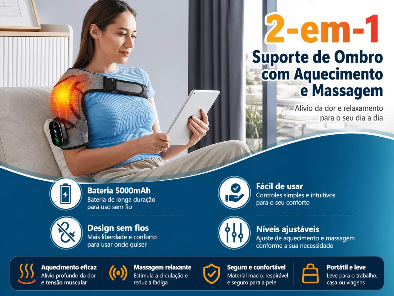 O Massageador combina praticidade e eficiência em um único produto. Com bateria de longa duração e design confortável, ele é ideal para quem busca aliviar dores e melhorar a qualidade de vida sem sair de casa.