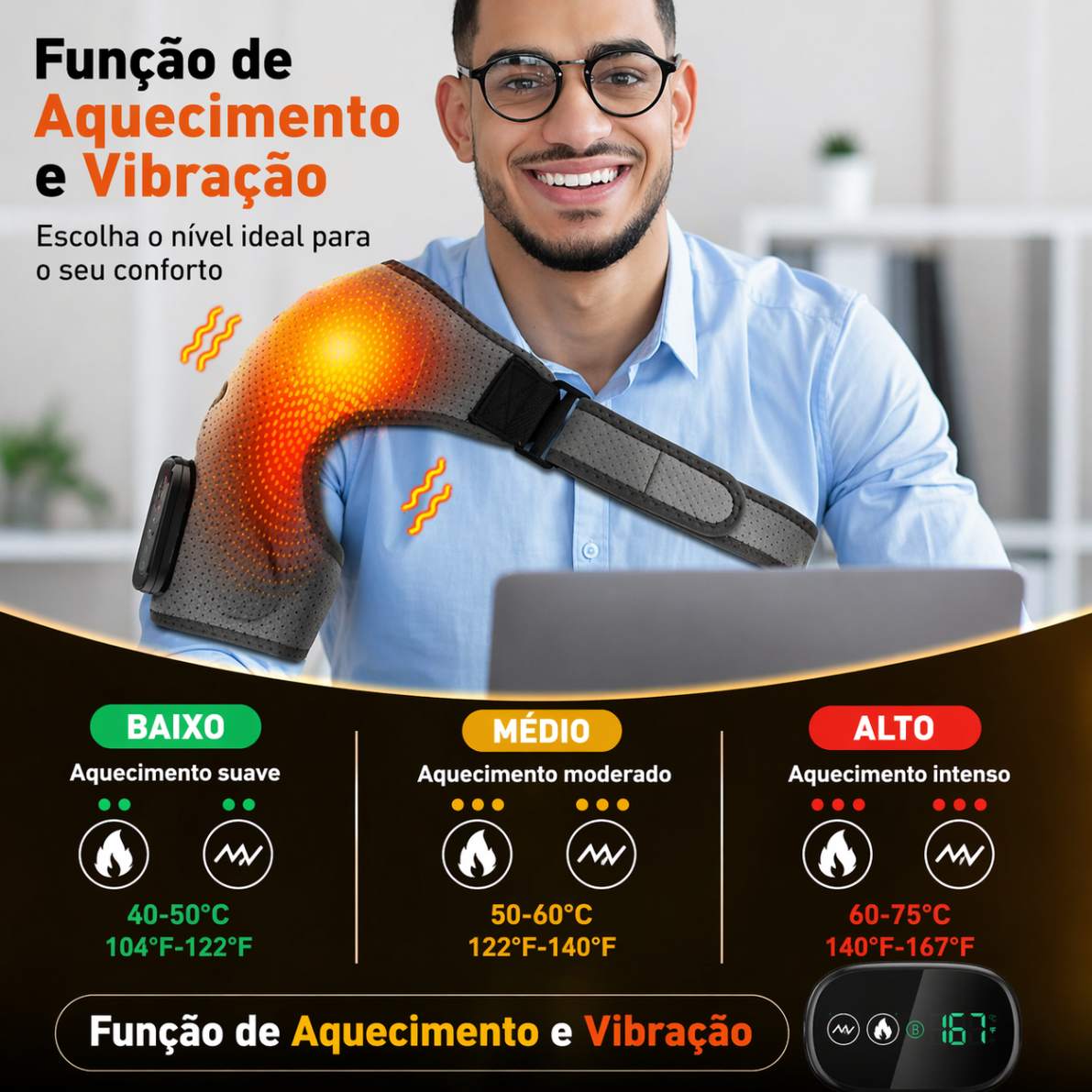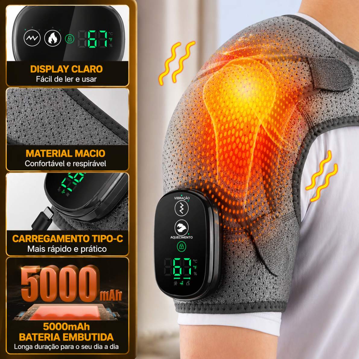 Com design ergonômico e material em neoprene de alta qualidade, este massageador se adapta perfeitamente ao corpo, oferecendo uma experiência eficiente para aliviar dores, tensão muscular e fadiga.