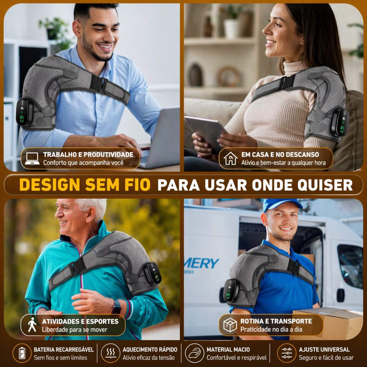 - Alívio eficaz de dores no pescoço e ombros