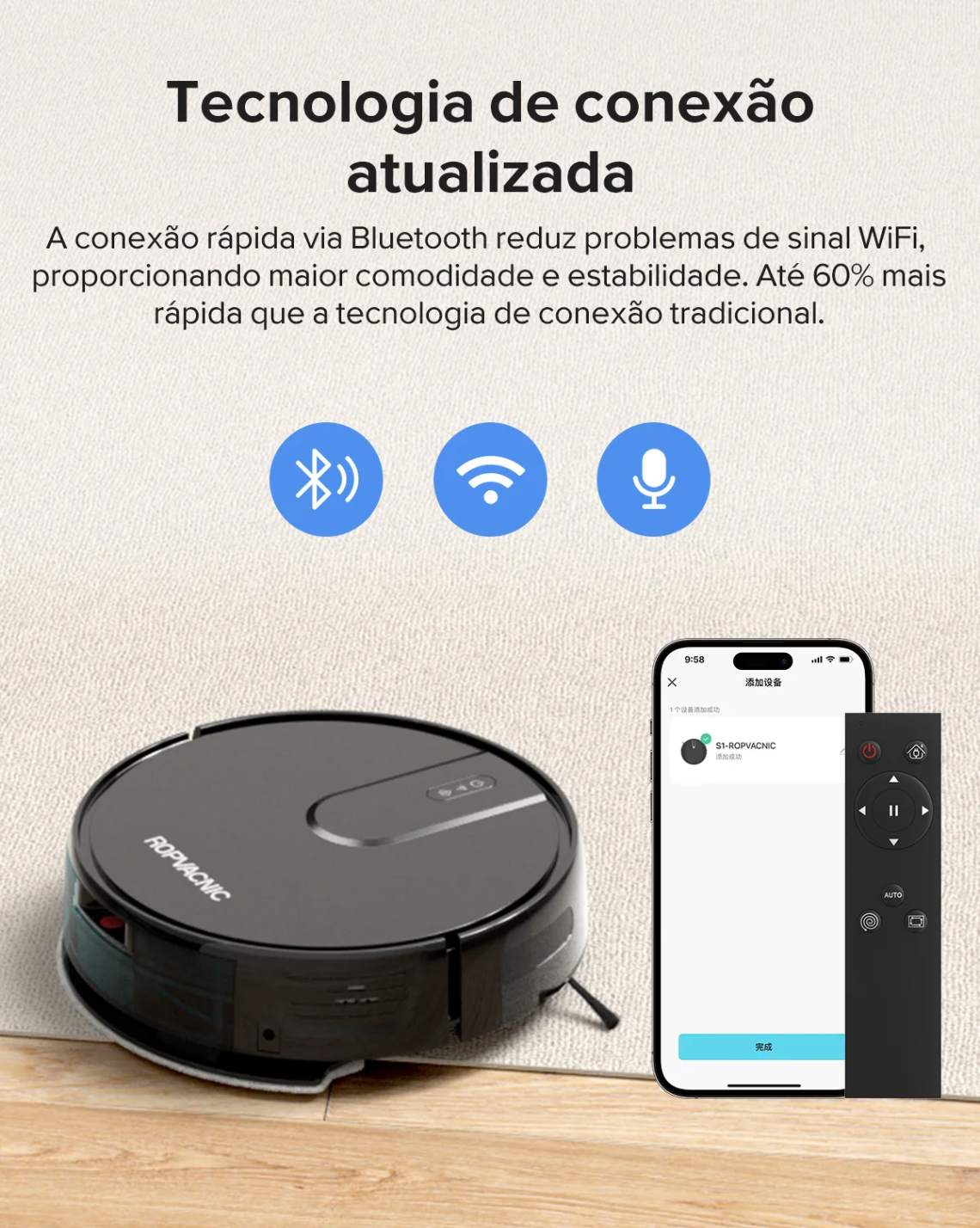 Robô Aspirador de Pó Inteligente 3 em 1 – Aspira, Varre e Passa Pano com Controle por App, Alexa e Google